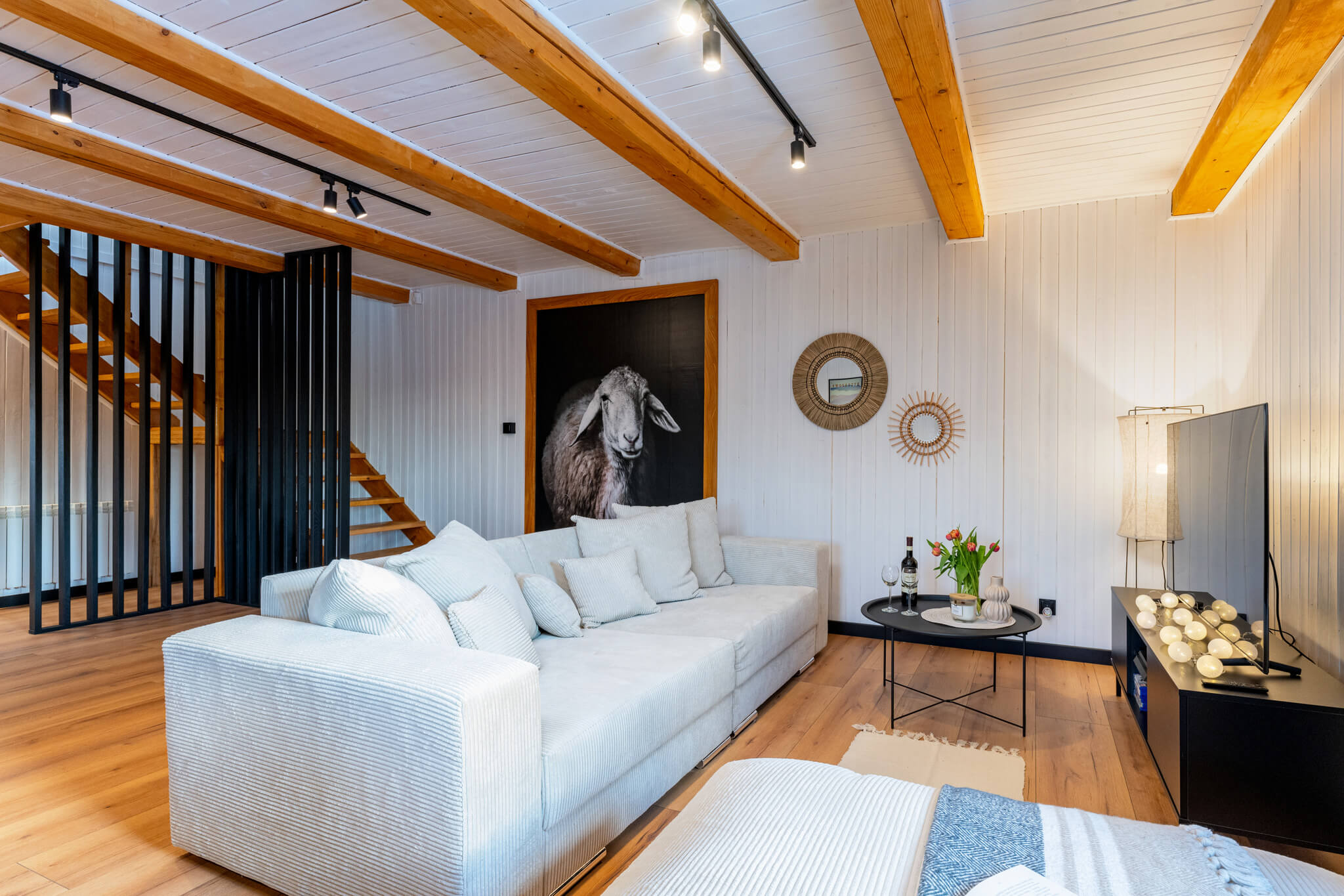 W naszej chacie znajdziesz wszystko, czego potrzebujesz, aby poczuć się jak w domu. Trzy przestronne sypialnie, dwie łazienki, w pełni wyposażona kuchnia i przytulny salon to tylko początek. Dla Twojej wygody przygotowaliśmy ręczniki, żelazko, suszarki i wiele innych udogodnień. Wieczory możesz spędzać grając w planszówki, relaksując się przy Smart TV lub korzystając z konsoli PlayStation 4.
